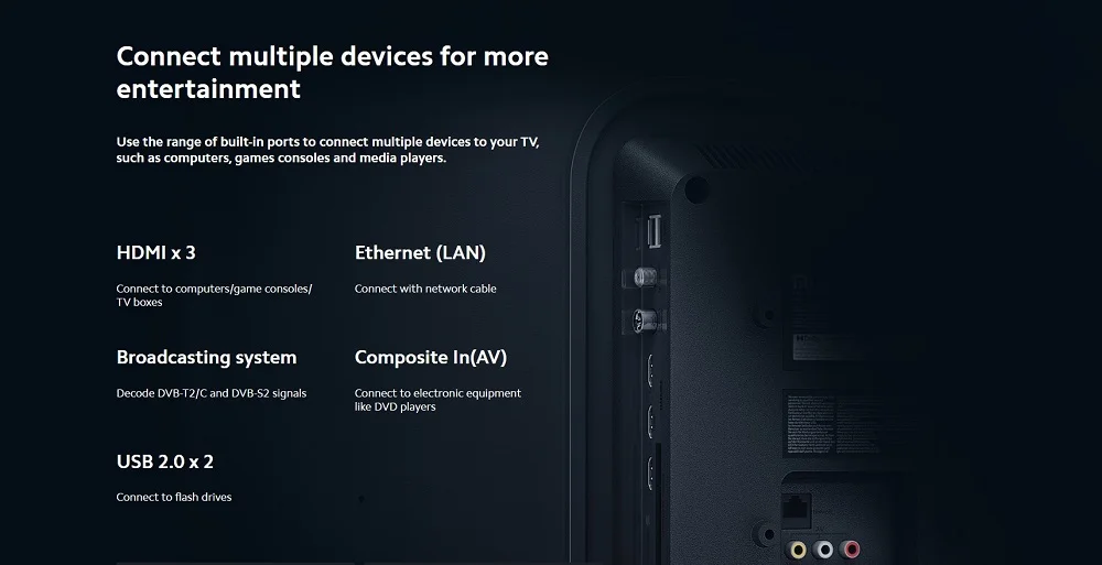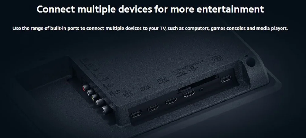 Use the range of built-in ports to connect multiple devices to your TV, such as computers, games consoles and media players.